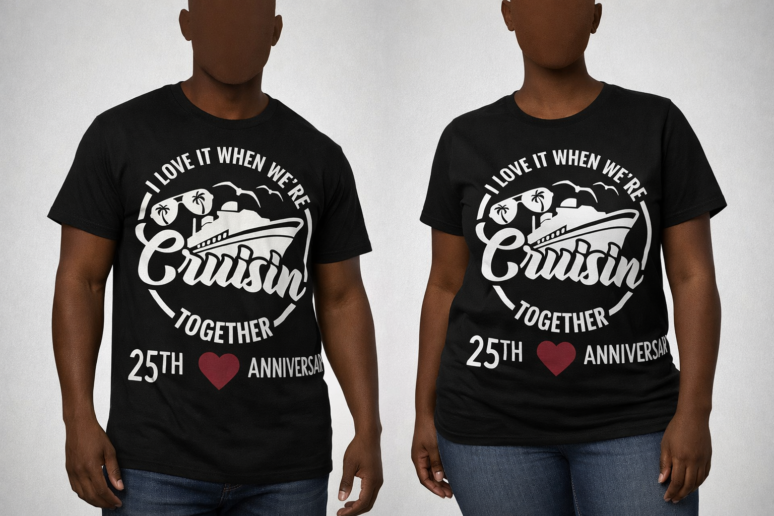 We provide the T-shirt and create a custom design tailored to your vision. Each shirt is professionally pressed using high-quality materials for a clean, long-lasting finish.